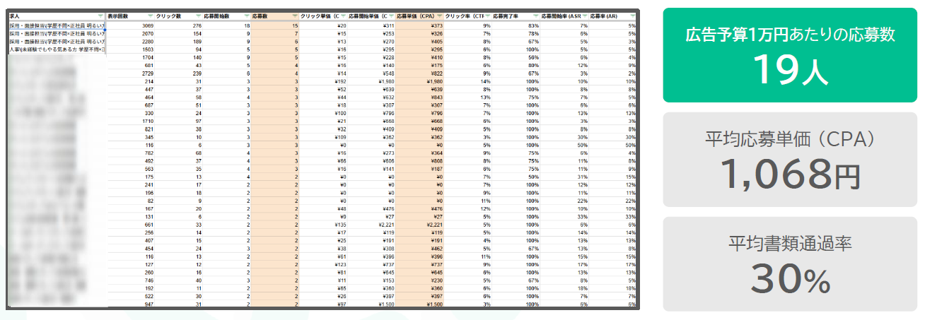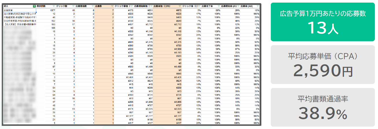 平均応募単価1,242円 月間1,400名の応募獲得