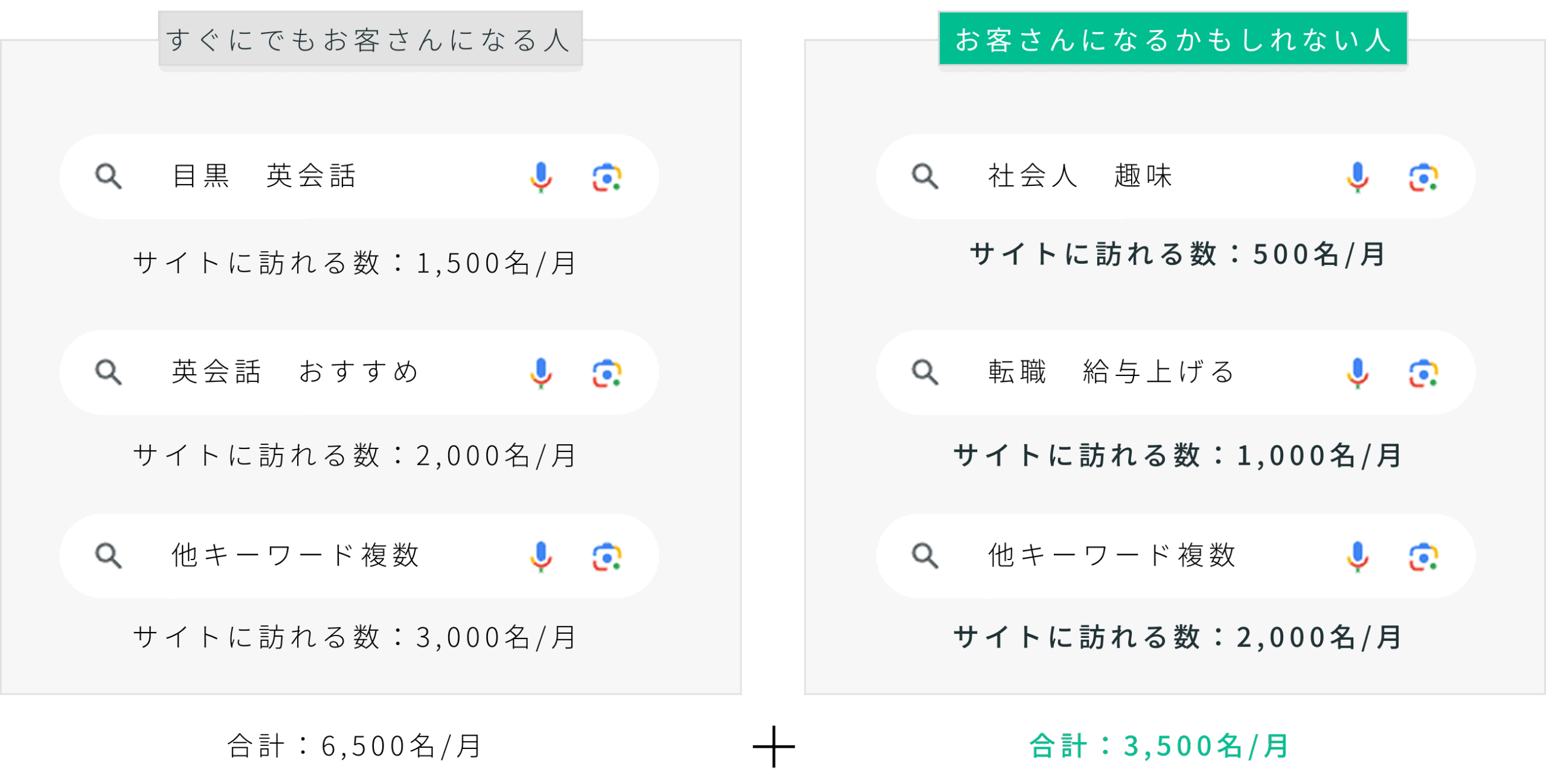 SEO施策によって、合計10,000名/月の訪問者が来ました。