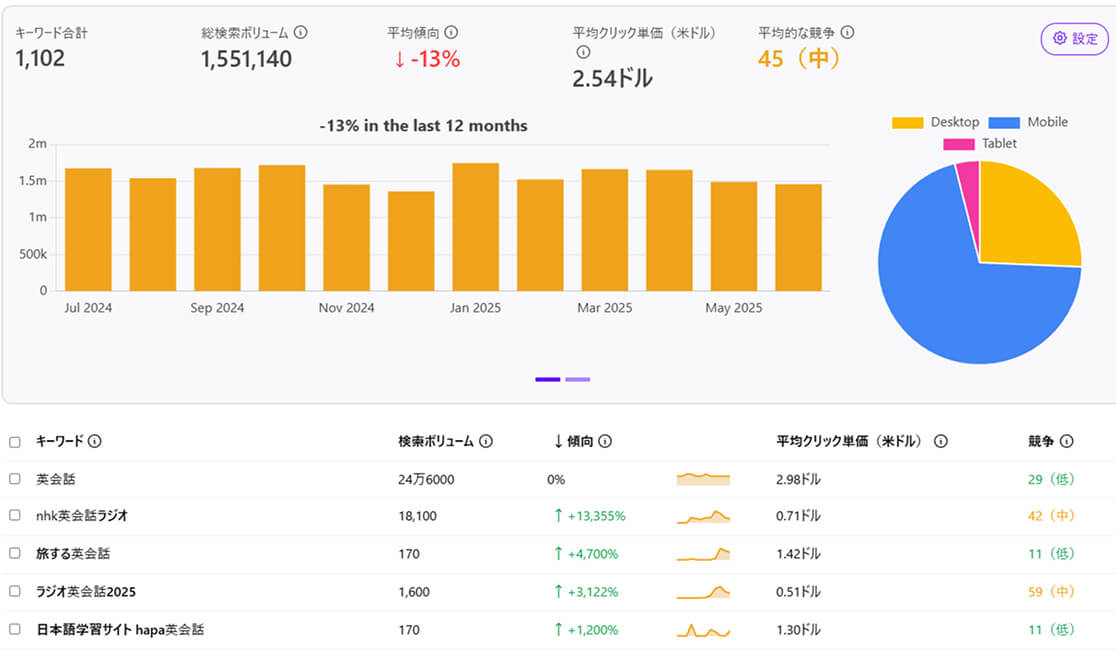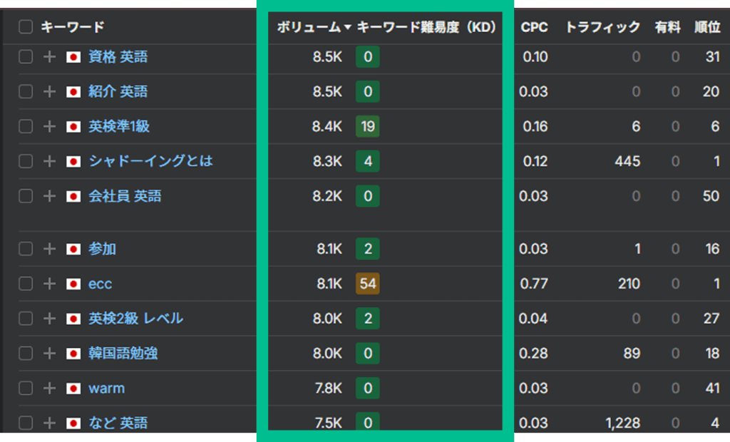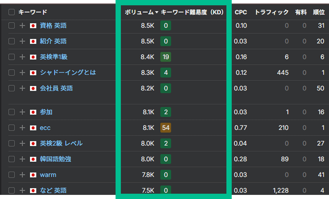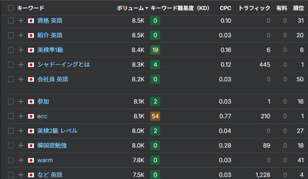 様々な検索キーワードで表示させ、